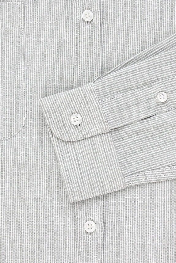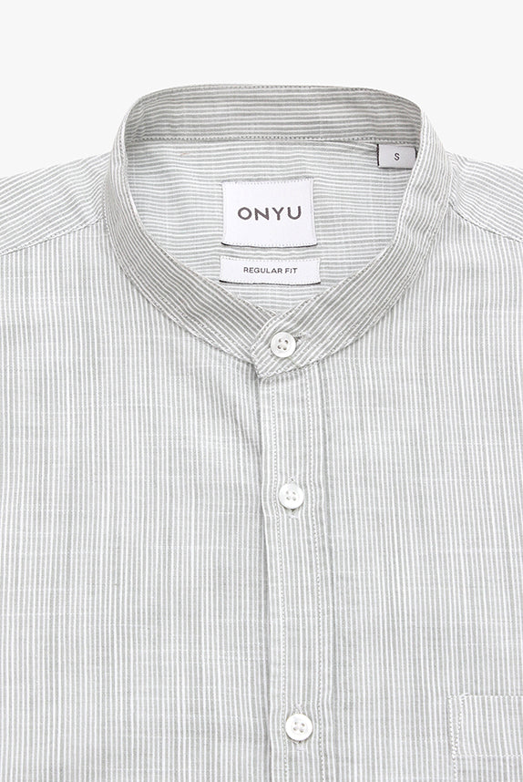 Mao Khaki Pin Striped Cotton Shirt