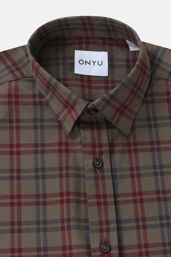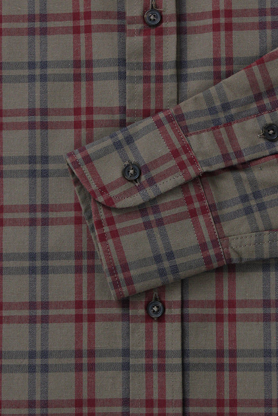 Olive/Burgundy Checks Flannel Shirt